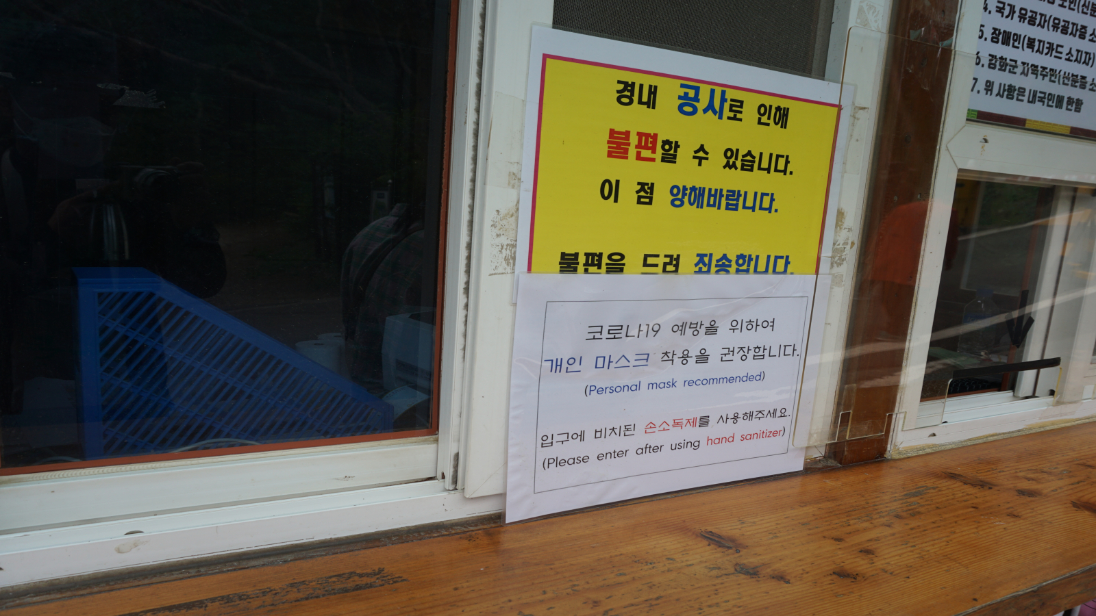 코로나 19 예방을 위해 마스크를 착용하라는 안내문