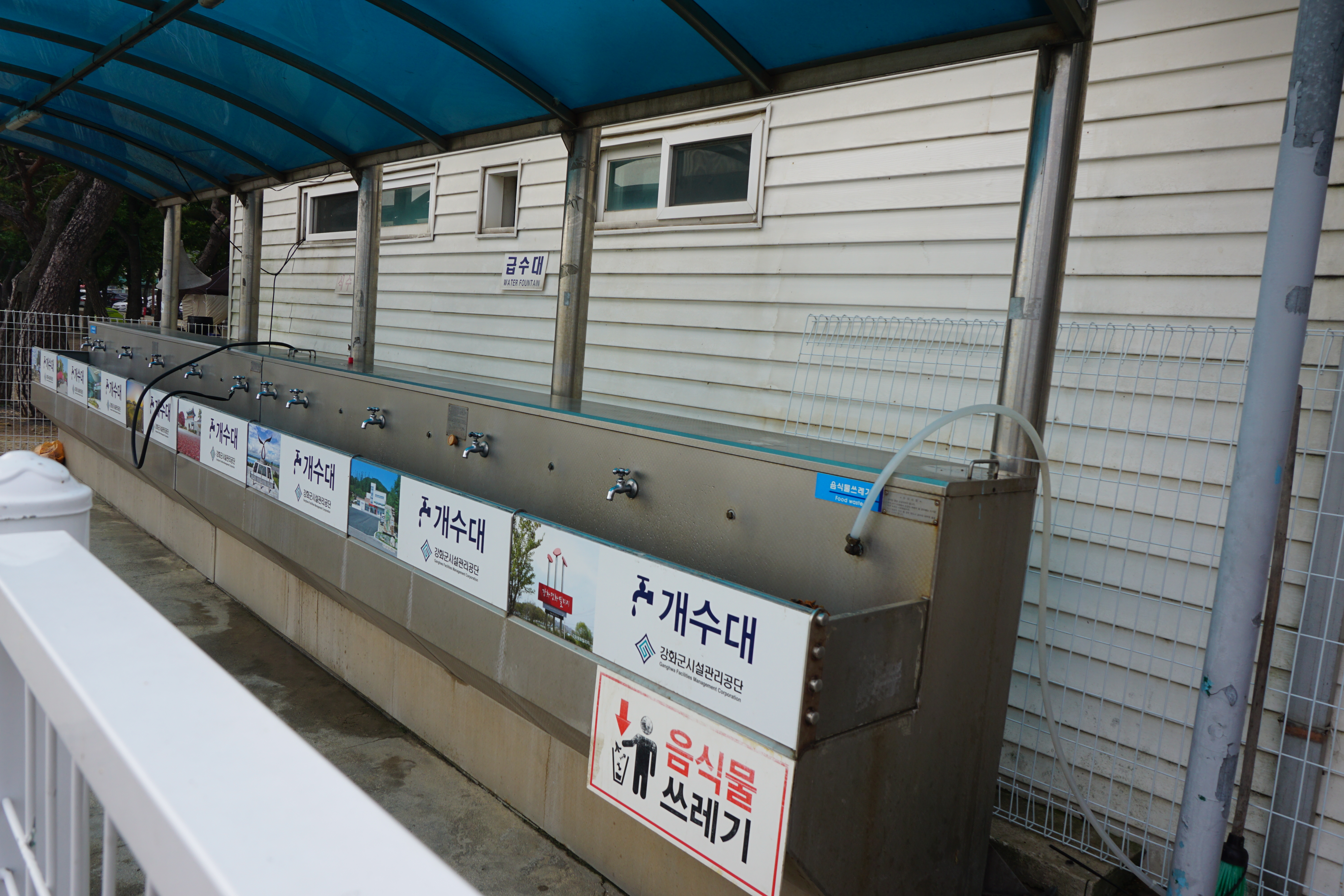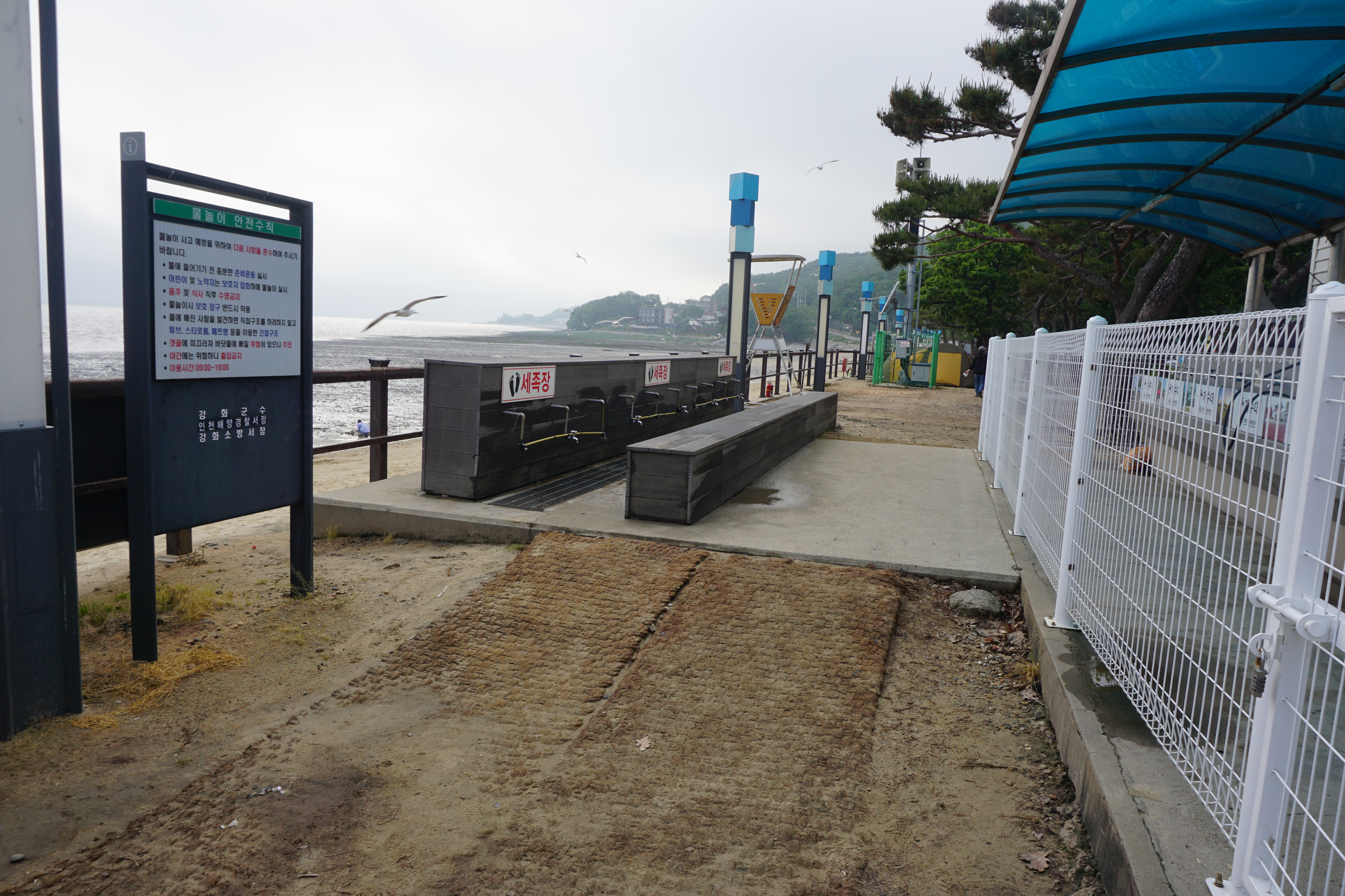 해변 옆에는 공영 샤워장과 취사를 위한 개수대가 있습니다.