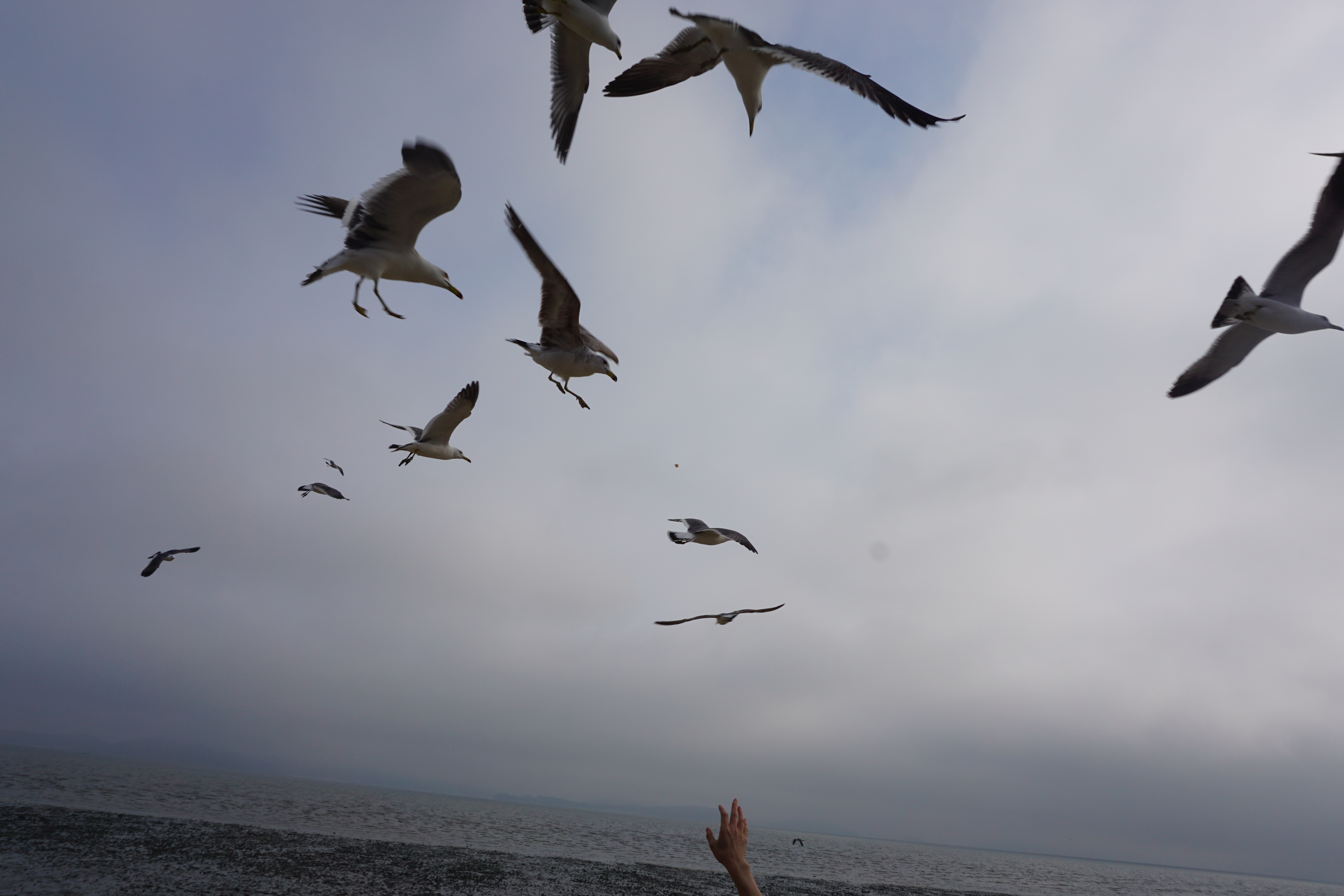 새우깡을 들고 있으면 갈매기가 모여드는데요.